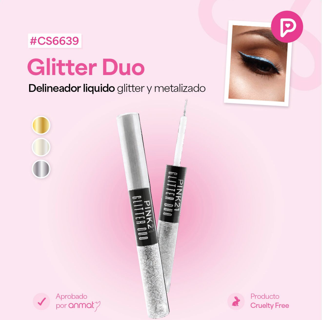 DELINEADOR LIQUIDO GLITTER Y METALIZADO PINK21 CS6639/98036