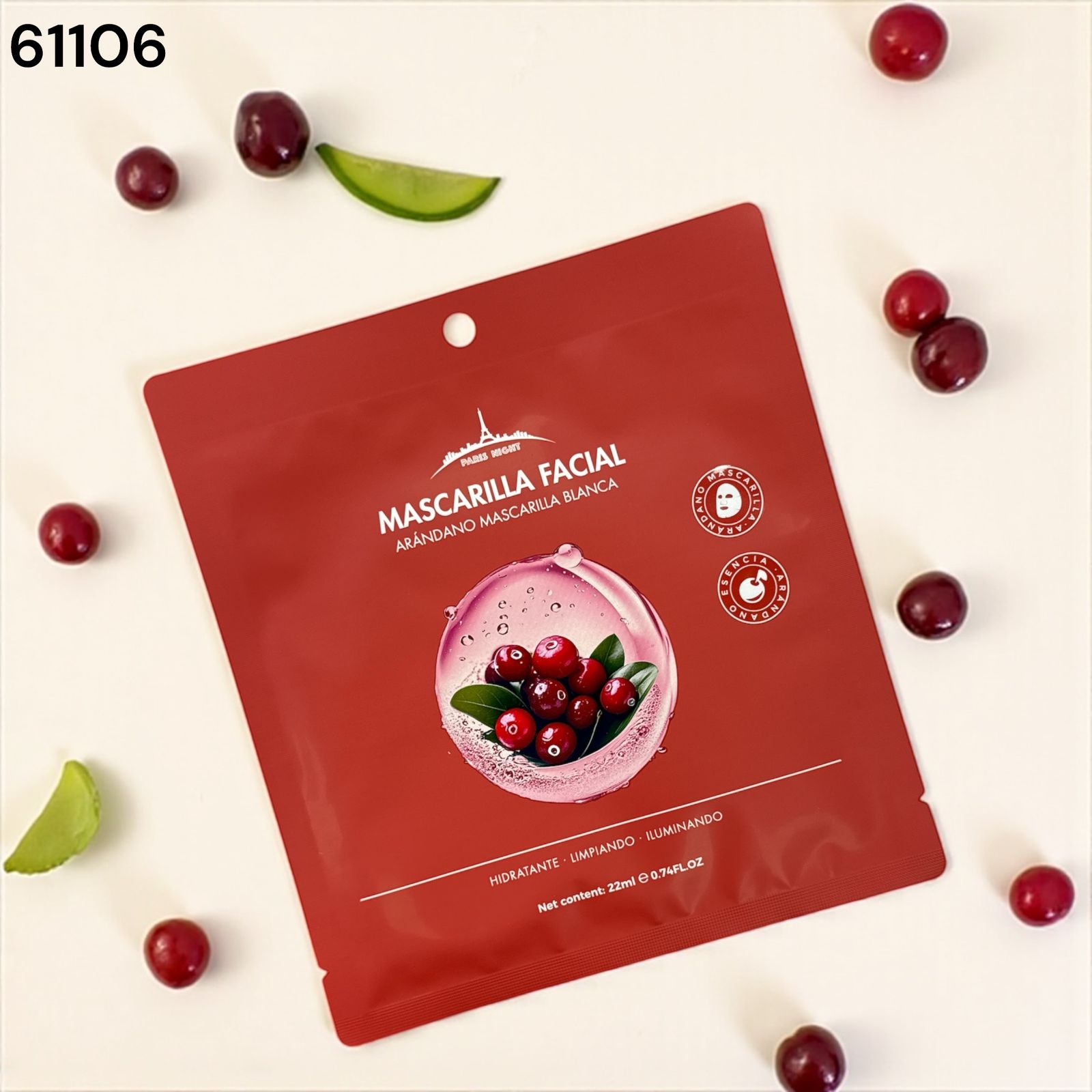 MASCARILLA FACIAL FIBRA VEGETAL ARANDANO PARIS NIGHT 61106