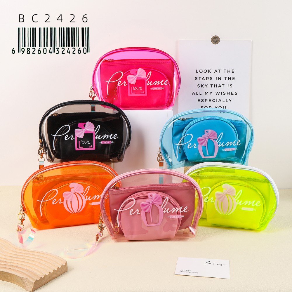 ¡Organizá tu rutina de belleza con un toque tierno y sofisticado! Este Set Dúo BC2426 es la combinación perfecta entre funcionalidad y diseño moderno. Incluye un neceser exterior de cristal totalmente transparente y un práctico sobre interno con forma de media luna, ideal para mantener tus cosméticos, productos de skincare y accesorios personales siempre en orden y protegidos.