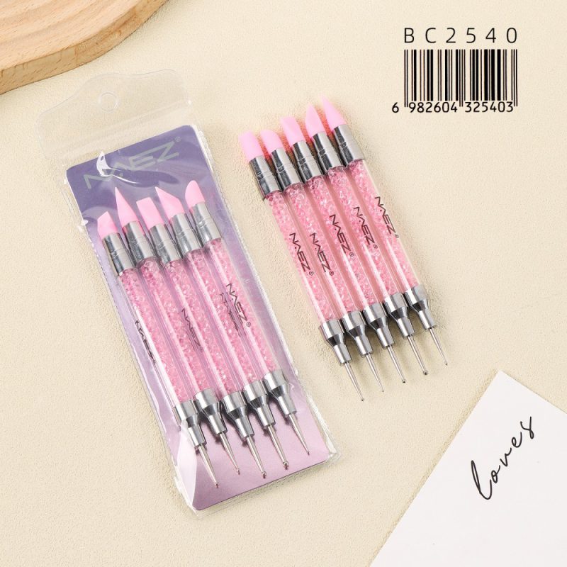 Set de 5 Pinceles de Silicona de Doble Punta NAEZ para Nail Art – BC2535/25359